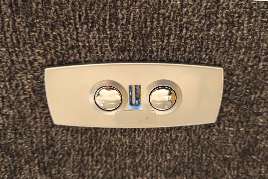 リクライニングのスイッチの中央にUSBタイプAの充電ポートがついています。ソファーに座りながらスマホを充電できるので長時間スマホを触ってくつろぐのに適しています。