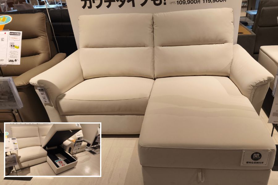 またこのカウチ部分の下が収納スペースになっているため、ちょっと寒いときにだけ使いたいひざ掛けやすき間を埋めてベストな姿勢を作るためのクッション等を入れておくのに適しています。