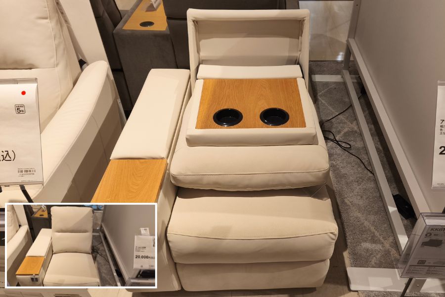 しかも電動リクライニング付きなので、オットマンやカウチのようにスペースを取ることもなく足を上げて伸ばせます。