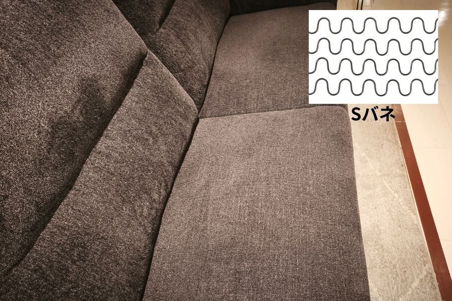 座面にはソファーでよく使用されるSバネが採用。Sバネの上にフラットな形状のウレタンが乗っている一般的な座面です。固すぎず柔らかすぎずといった万人受けを意識したクッション性能です。